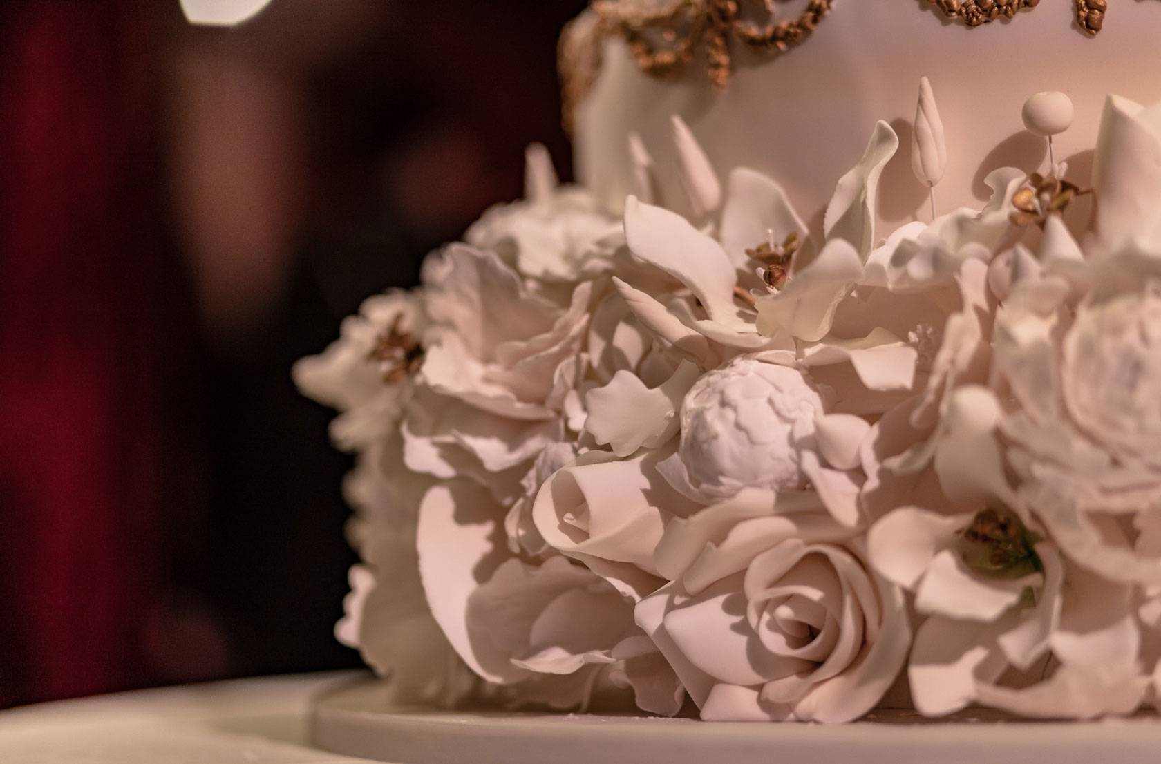 No flower was spared. We creatively designed a variety of hand-made roses, lilies, peonies and hydrangeas to name a few. Each delicately styled at the base and on the top of the cake.