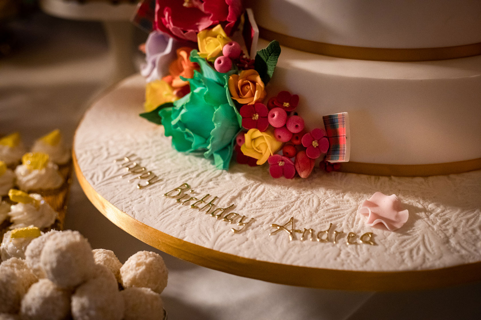 We personalised the centrepiece cake with "Fifty" written in gold, plus "Happy Birthday Andrea" on the cake board.